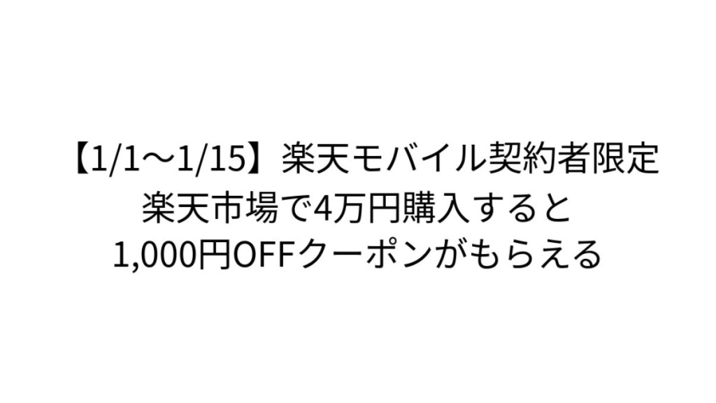 楽天モバイルをご契約中の方を対象に、楽天市場・楽天ブックス・楽天Koboで使える1,000円OFFクーポンがもらえるキャンペーンが開催されています。