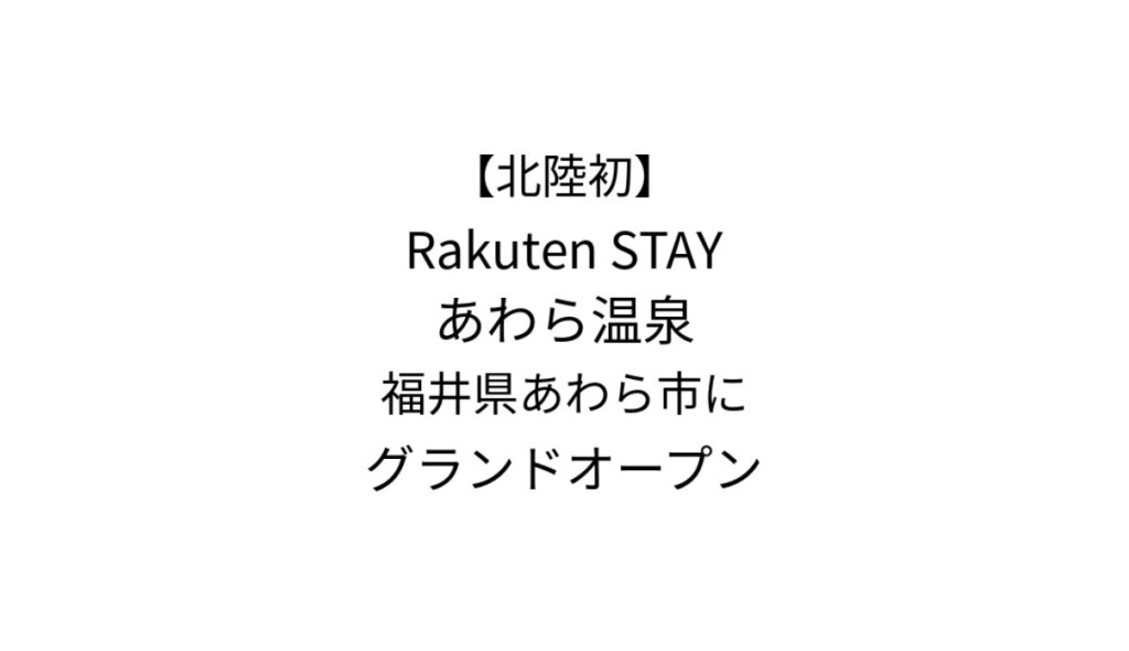 「Rakuten STAY あわら温泉」 をグランドオープンしました。