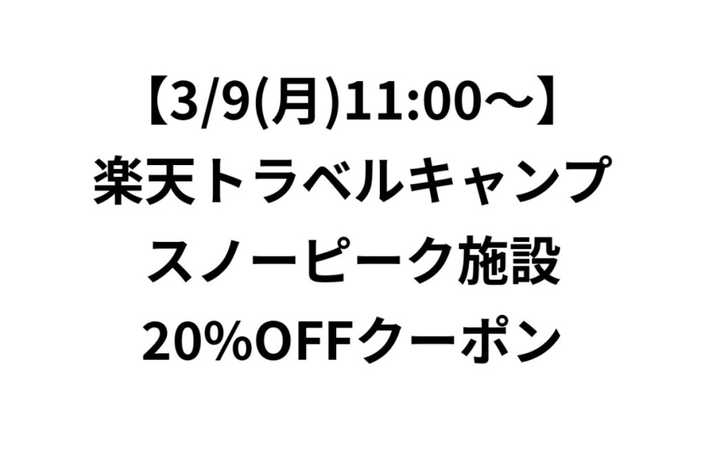 スノーピーク施設対象クーポンが配布されています。