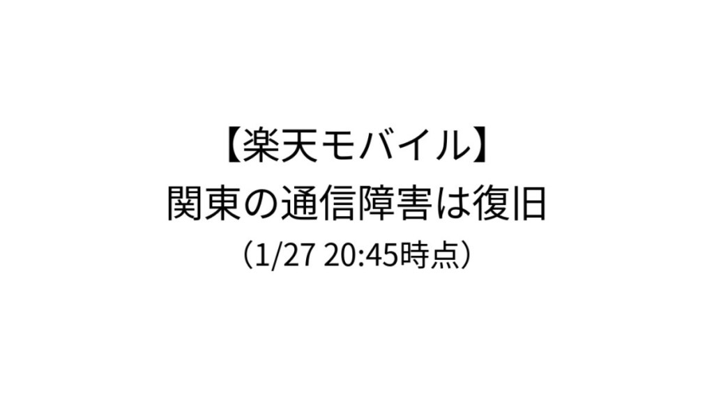 • 【楽天モバイル】関東の通信障害は復旧(1/27 20:45時点)