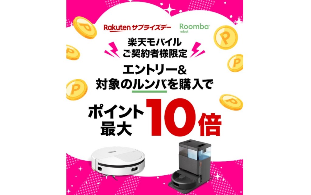 楽天市場で、ルンバ関連の大型ポイントキャンペーンが 48時間限定で同時開催 されます!