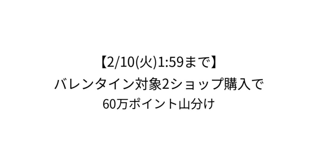 • 【2/10(火)1:59まで】バレンタイン対象2ショップ購入で60万ポイント山分け